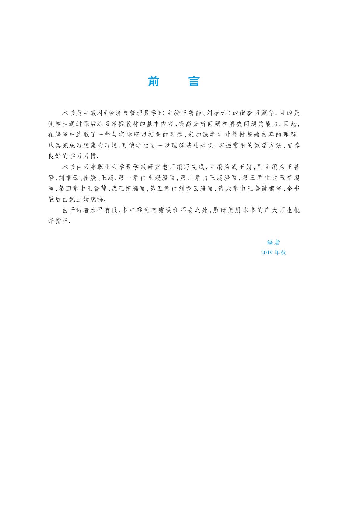 本书习题安排由浅入深,具有梯度,既可作为高职院校经管类学生的教材配套习题,也可作为高职院校不同专业学生的教学参考用书.