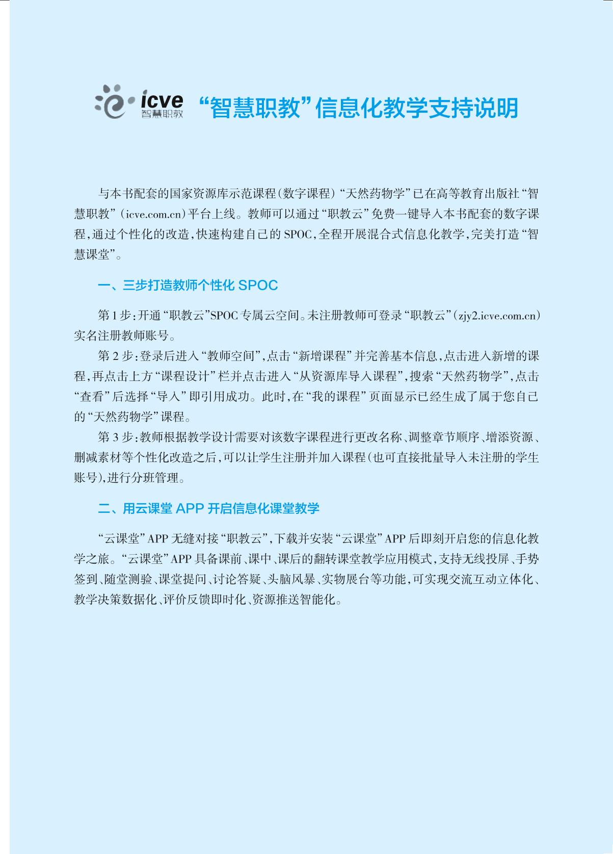 本书是国家职业教育药学专业教学资源库配套教材,也是高等职业教育药学专业课一岗一证一体化新形态系列教材之一。本书主要介绍药用植物学基础知识、天然药物的质量保证和常用药材与饮片,在编写内容上以介绍基础理论、基本知识和基本技能为重点,以《中华人民共和国药典》(2015年版)为技术标准。 本书特点:①?采用全彩色印刷,更接近于天然药物真实状态,且图片多为编者亲自拍摄,逼真清晰。②?内容编写遵循认知规律,以实例启发,对接工作岗位,教材的可读性与趣味性强。③?栏目设计增设“岗位对接”“考证聚焦”“知识拓展”等,进一步强化学习者的职业意识。④?本教材与“智慧职教”平台丰富的数字资源融合共享,既能充分满足现代化社会“学”的需求,又使教师“教”的层次得以充分提高。 本书适合高职高专药学类、食品药品管理类和药品制造类等专业使用,也可供医药行业从业人员继续教育和培训使用。 |