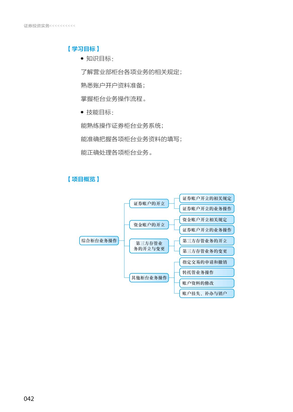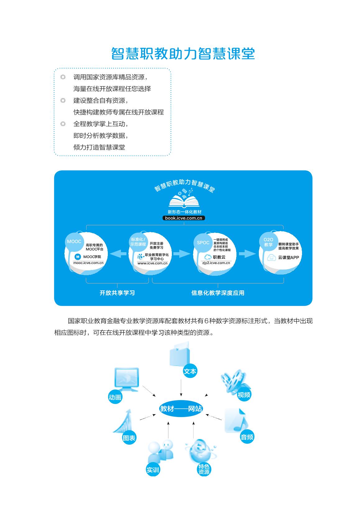 本书是“十二五”职业教育国家规划教材修订版;同时也是国家职业教育金融专业教学资源库转型升级配套教材。 国家职业教育金融专业教学资源库项目是教育部、财政部为深化高职教育教学改革,加强专业与课程建设,推动优质教学资源共建共享,提高人才培养质量而启动的国家级高职教育建设项目。该项目于2016 年入选教育部升级改进项目并于2018 年通过了验收。 本书是根据教育部有关高职高专教育改革精神和金融专业教学资源库建设项目的具体要求,以培养技术、技能型人才为目标而编写的。 本书力求体现“以就业为导向,以能力为本位”的精神,注重学生技能的培养,精心整合内容结构,合理安排知识点、技能点,注重实训教学,突出对学生实际操作能力和解决问题能力的培养。 本书包含证券营销业务操作、股票投资操作、债券投资操作、证券投资基金投资操作等十三个项目,内容编排充分考虑与行业标准和岗位职责相吻合。本次修订更新了相关证券法律法规,补充了证券业最新变化内容,进一步优化配套资源,体现技能、知识、素养并重的理念。 本书适用于高职高专院校、成人院校的金融专业及经济管理类相关专业,也可作为自学参考书及相关培训用书使用。 本书使用者可通过访问“智慧职教”(http://www.icve.com.cn)平台上的金融专业教学资源库在线学习,亦可按照“郑重声明”页的资源服务提示获取其他资源服务。 |