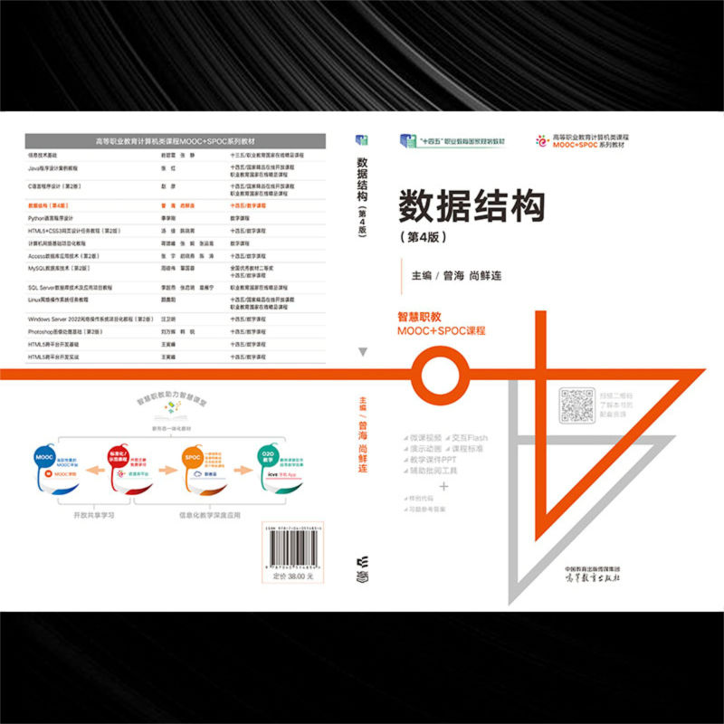 本书为“十四五”职业教育国家规划教材。 全书共分为7章,分别是绪论、线性表和数组、栈和队列、树和二叉树、图、排序、查找。在每章中安排多个具体任务,通过任务的提出和描述、分析任务、实现任务、自主完成任务等环节,引导学生循序渐进地学习、巩固和内化所学的知识与技能。 本书配有微课视频、Flash、动画、授课用PPT、样例代码、习题答案等丰富的数字化学习资源。与本书配套的数字课程“数据结构”在“智慧职教”平台(www.icve.com.cn)上线,学习者可登录平台在线学习,授课教师可调用本课程构建符合自身教学特色的SPOC课程,详见“智慧职教”服务指南。教师也可发邮件至编辑邮箱1548103297@qq.com获取相关资源。 本书可以作为高等职业院校电子信息类数据结构课程的教材,也可供计算机专业人员和爱好者作为自学参考书使用。 |