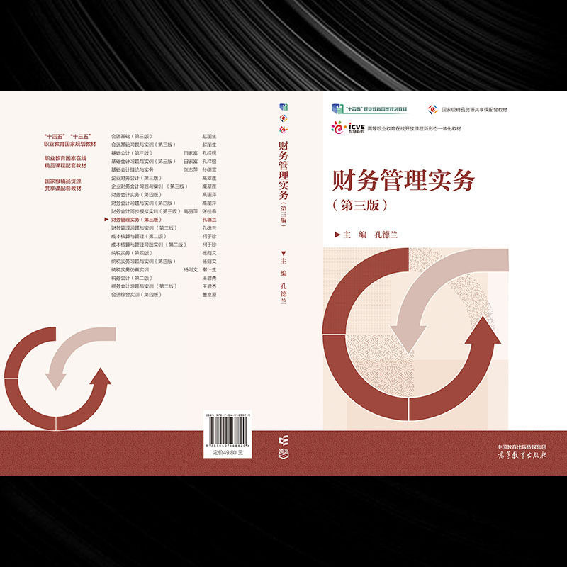 本书是“十四五”职业教育国家规划教材,也是国家级精品资源共享课程“财务管理实务”的配套教材。本书充分吸收国家级精品资源共享课的建设与改革成果,以全国会计师专业技术资格标准为参照,以企业财务管理活动为主线,以财务管理相关业务操作为主体,突出财务管理岗位职业能力与职业素质培养。本书共分为十个项目:首先介绍财务管理认知和财务管理基本观念;然后介绍财务管理的核心内容,即筹资管理、资本成本及其结构、项目投资管理、证券投资管理、营运资金管理、收益分配管理;最后介绍财务管理的专题内容,即预算管理和财务分析。 本书充分体现“做中学、学中做”的基本宗旨,以及“易学、易教、易用”的基本要求,建成以课程建设为总体目标的集教材、教学资源配置为一体的课程式立体化教材,真正体现高职教育“职业性、实践性、开放性”的特点。本书设计新颖,内容简明,案例丰富,考核全面,融通俗性、可读性、应用性于一体。为便于教学,与本书配套的《财务管理习题与实训》(第二版)内容包括“本章学习目标”“本章重点与难点”“知识点回顾”“典型题例分析”“职业能力训练”五部分。 本书建有丰富的立体化教学资源,包括国家级精品资源共享课程“财务管理实务”网络教学资源中建有的网络学习资源(内含教学录像、教学课件、习题作业、例题、案例、视频等)。本书边白处另配有用二维码自连接的资源,可使用智能移动终端设备扫描进行学习。本书学习者可在线学习相关资源,亦可按照“郑重声明”页的资源服务提示获取其他资源服务。 本书适用于高等职业专科院校、高等职业本科院校、中等职业院校、成人高校及应用型本科院校大数据与财务管理、大数据与会计等财务会计类专业及经济管理相关专业的教学,并可作为社会从业人员的参考读物。 |
