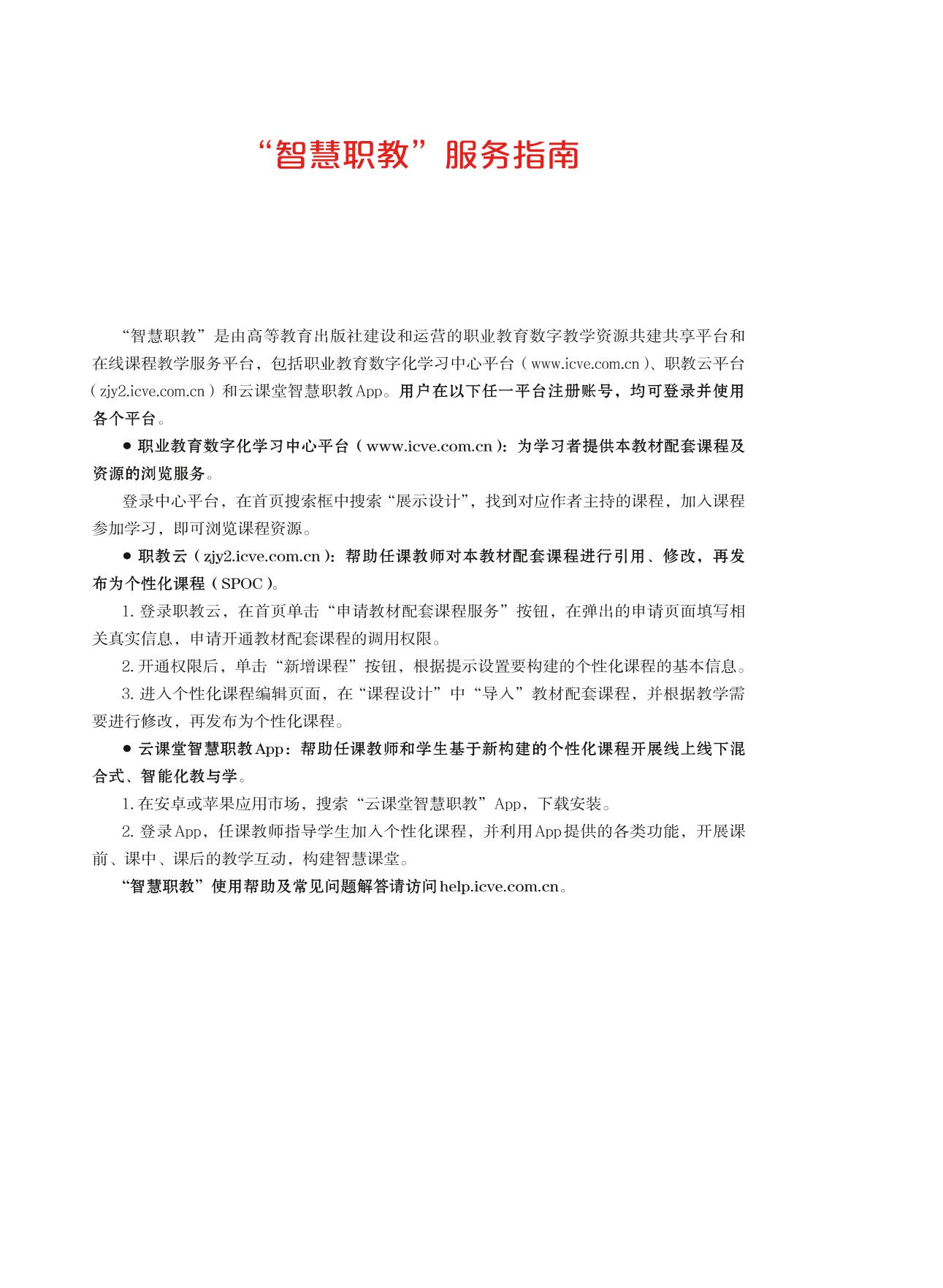 本书为“十二五”职业教育国家规划教材修订版。本书主要包含展示设计概论、展示项目的运作、展示设计与人体工程学、展示空间设计、展示设计中的照明设计、展示的色彩设计、新技术在展示设计中的应用、展示道具设计、展示制图、展示材料的特性与选择、展览设计、商业展示空间设计、橱窗展示设计等内容。 本书采用项目驱动的教学方法,致力于培养艺术设计专业应用型、技能型人才,通过一系列项目的严格训练,使学生熟悉展示设计的相关知识,胜任展示设计与制作的工作,为今后走向工作岗位打下坚实的专业基础。 本次修订,书中配套建设了二维码视频、授课用PPT、习题答案等丰富的数字化学习资源。与本书配套的数字课程“展示设计”已在“智慧职教”网站(www.icve.com.cn) 上线,学习者可以登录网站进行学习,授课教师可以调用本课程构建符合自身教学特色的SPOC 课程,详见“智慧职教”服务指南。教师也可以发邮件至编辑邮箱gaojiaoshegaozhi@ 163.com 获取相关资源。 本书适合作为高等职业教育院校、中等职业教育学校展示设计专业、视觉传播设计专业、环境艺术设计专业、会展专业相关课程的教材,也可以作为相关从业者的参考用书。 |