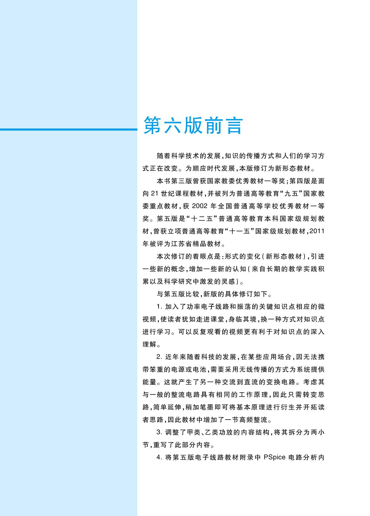 顺应时代发展,本版修订为新形态教材。本书第四版是面向21世纪课程教材,并被列为普通高等教育“九五”国家教委重点教材;第五版是“十二五”普通高等教育本科国家级规划教材,曾立项普通高等教育“十一五”国家级规划教材。全书由绪论,功率电子线路,谐振功率放大器,振荡器,振幅调制、解调与混频电路,角度调制与解调电路和反馈控制电路及附录(选频网络)组成。本书在第五版基础上增加了适用于无线接收的高频整流的内容;添加了功率电子线路和振荡的关键知识点微视频;将附录的PSpice电路分析改为Multisim电路分析,给出相应例题揭示瞬态仿真与稳态分析的差异;增加了利于深入理解的例题。 本书可作为高等学校电子信息类专业相关课程(非线性电子线路、高频电子线路、通信电子线路等)的教材,也可供从事电子技术工作的工程技术人员参考。 |