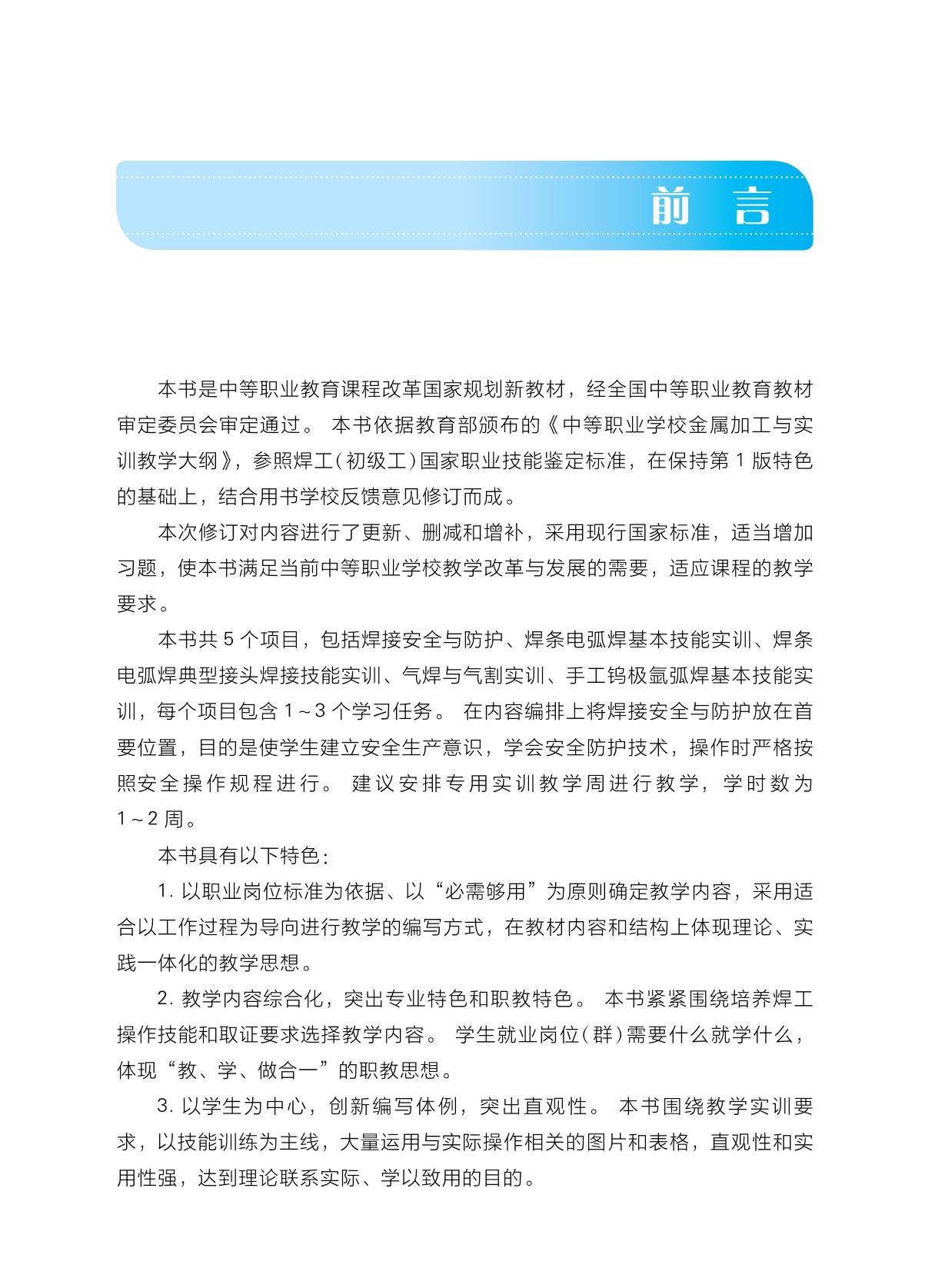 本书是中等职业教育课程改革国家规划新教材,经全国中等职业教育教材审定委员会审定通过。本书依据教育部颁布的《中等职业学校金属加工与实训教学大纲》,参照焊工(初级工)国家职业技能鉴定标准,在保持第1版特色的基础上,结合用书学校反馈意见修订而成。 本书主要内容包括绪论、焊接安全与防护、焊条电弧焊基本技能实训、焊条电弧焊典型接头焊接技能实训、气焊与气割实训、手工钨极氩弧焊基本技能实训及附录。 本书配套电子教案、演示文稿等数字化资源,请登录http://abook.hep.com.cn/sve免费获取,详细说明见本书“郑重声明”页。 本书可作为焊接技术应用专业的教学用书,也可作为相关岗位技术人员的培训用书。 |