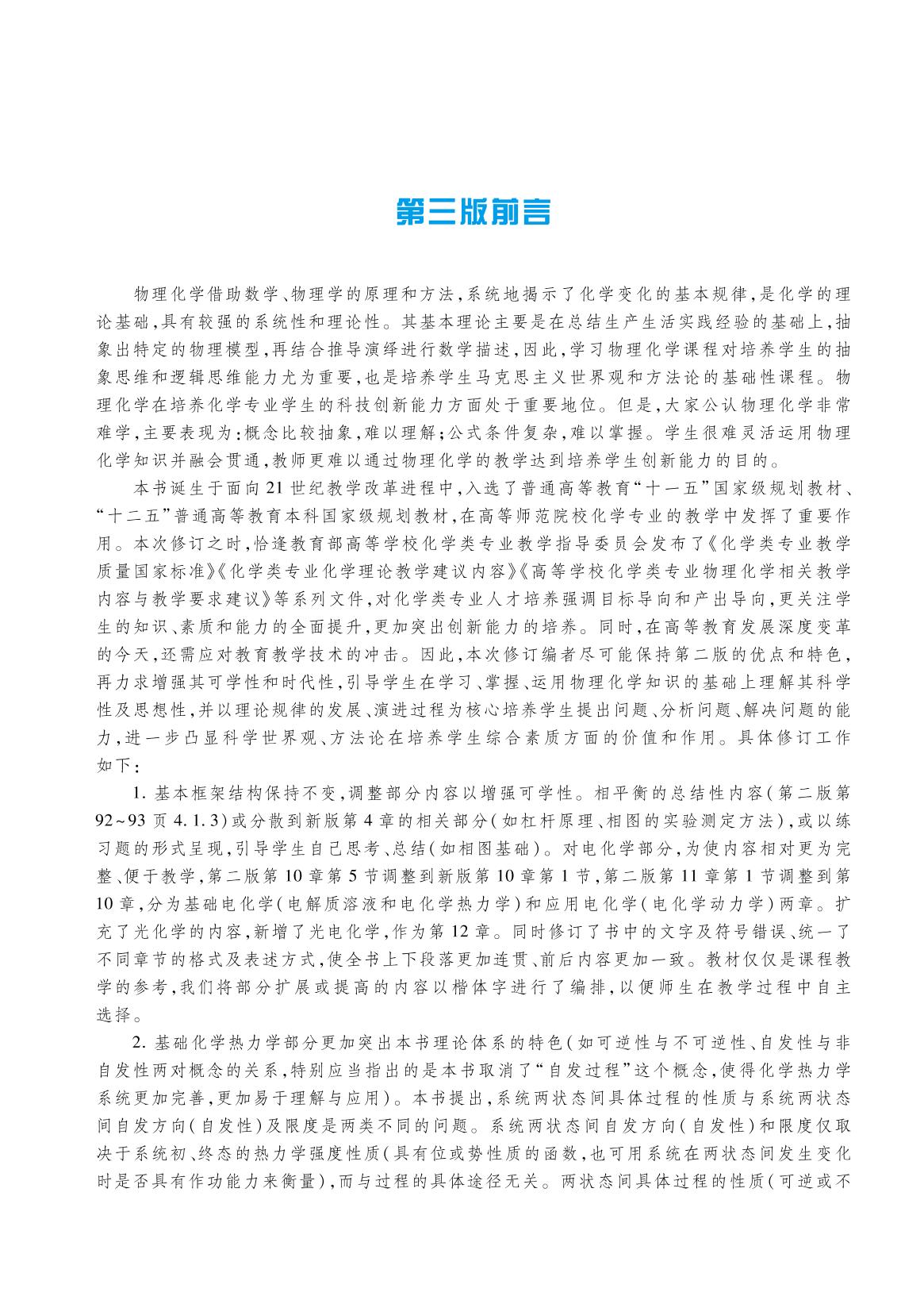 本书为面向21世纪课程教材,入选了普通高等教育“十一五”国家级规划教材、“十二五”普通高等教育本科国家级规划教材。本次修订保持了原版基本框架结构不变,调整了部分内容以增强适用性,将物理化学基本规律的原始研究文献等内容放入书中二维码中,请读者扫码获取。全书共分六篇12章,包括第一篇化学热力学,第二篇统计热力学基础,第三篇化学动力学,第四篇电化学,第五篇胶体及界面化学,第六篇光化学与光电化学。 本书可供高等师范院校物理化学课程教学使用,也可供高等学校相关专业教学参考。 |