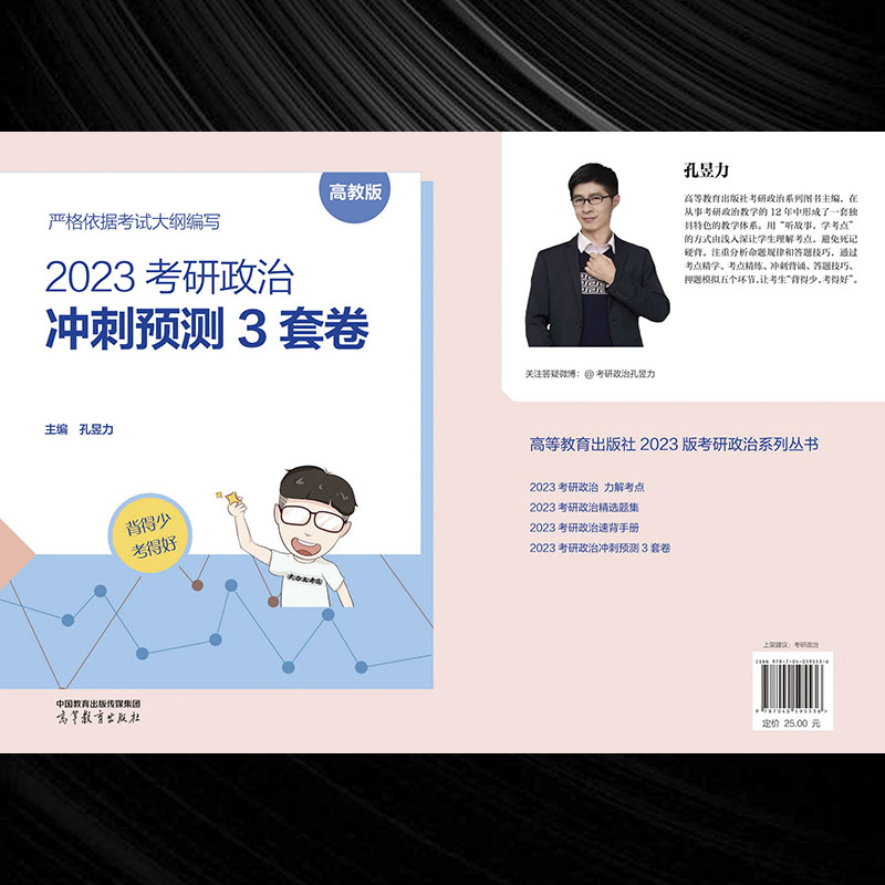 《2023考研政治冲刺预测3套卷》简明扼要、重点突出、注释准确。近些年,思想政治理论试题的考查方向更加侧重考生对基础知识的理解和应用,对基础知识的牢固掌握,是考生通过考试并取得高分的必要前提。因此,《2023考研政治冲刺预测3套卷》在严格遵守大纲要求的前提下,根据最新考试出题的特点和方向,将考生必须掌握的知识点给予明确标注,有助于考生对基础知识的掌握,同时减轻了学生长篇累牍之苦。本书适用:基础知识掌握情况一般和想在考试中取得高分的考生。 |