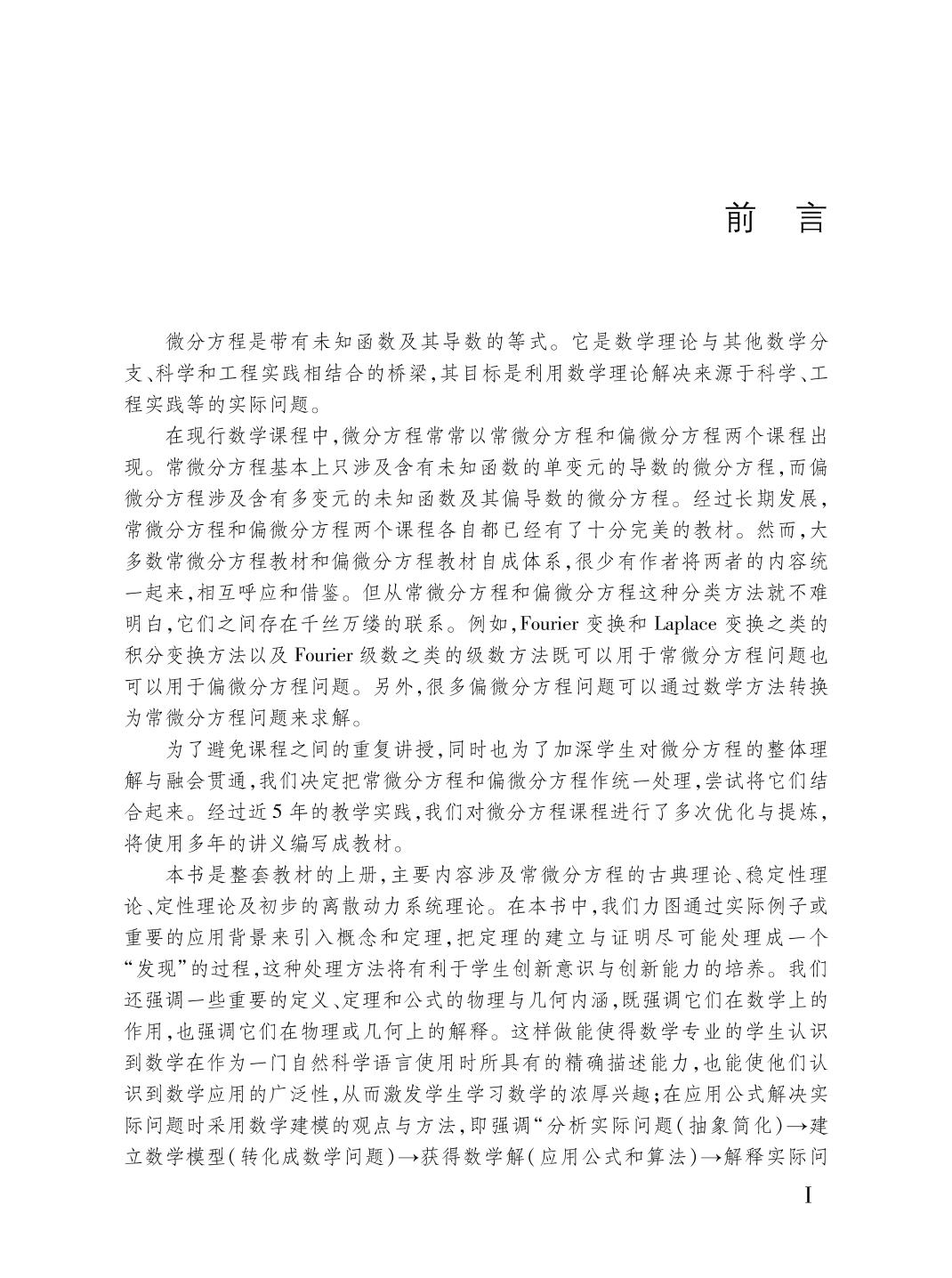 本套教材包含微分方程的基础内容。教材分上、下册。上册主要内容为常微分方程理论基础, 包括绪论、初等积分法、高阶微分方程、线性微分方程组、基本定理、定性与稳定性理论初步和离散动力系统简介等。下册主要内容为偏微分方程理论, 包括绪论、一阶偏微分方程、二阶线性偏微分方程的经典解法、偏微分方程解的性质、广义函数及Sobolev 空间、偏微分算子的基本解及其应用、偏微分方程的广义解及其正则性和非线性偏微分方程的典型解法。 本套教材可作为高等学校数学专业微分方程课程的教材, 也可供相关专业的教师、学生以及研究人员参考使用。 |