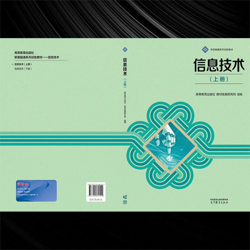 《信息技术》职普融通系列试验教材依据《普通高中信息技术课程标准》(2017年版2020年修订)和《中等职业学校信息技术课程标准》(2020年版)编写,分为上、下两册,以普通高中与中等职业学校学生的共同培养需求为编写导向,既面向升学考试,又紧扣职业岗位能力要求,针对多元发展路径,帮助学生提升信息技术学科核心素养。 上册教材共设计4个单元,涵盖数据与大数据、数据处理与应用、图文编辑、人工智能及应用等主题。每个单元均包含多个生活化、职场化的真实学习任务,每个任务中设计了知识讲解、实践体验、拓展阅读、巩固提高等模块,既强调技术原理与工具操作,也注重综合素养与创新能力的培养,突出职普融通特色。 教材配套的辅教辅学资源在教材中用相应图标给予了提示,登录高等教育出版社新形态教材网(https://abooks.hep.com.cn)可获取相关资源。详细使用方法见最后一页“郑重声明”下方的“学习卡账号使用说明”。 教材可作为职普融通教育改革背景下的信息技术公共基础课程教材,也可作为课程建设和教学研究的参考资料。 |