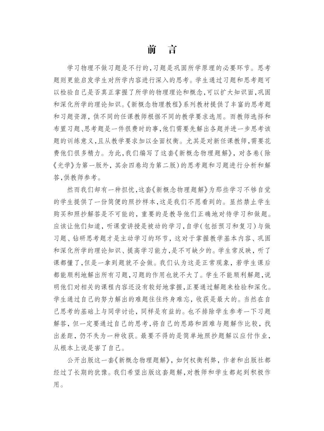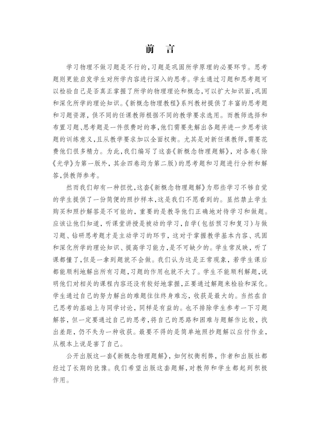 赵凯华主编的《新概念物理教程》系列教材提供了丰富的思考题和习题资源,而教师选择和布置习题、思考题是一件很费时的事。本书为这套教材的所有思考题和习题作了解答,为教师节省了时间和精力。学生也可以在自己思考的基础上,与该题解作比较,找出差距,检验和深化所学知识。 本书上册包括力学和电磁学,下册包括热学、光学和量子物理。书中所有的思考题和习题均配有原题,既可作为与《新概念物理教程》相配套的教学参考书,也可以作为普通物理课程的习题集供高等院校理工科类的师生和社会读者参考。 |