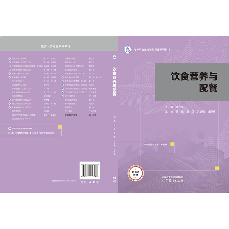 本书是高等职业教育智能烹饪系列教材之一。全书以营养配餐与设计能力培养为核心,并结合国家营养配餐员职业技能鉴定的基本要求进行编写。 本书共有六个项目:营养配餐基础、一般人群营养配餐、孕妇乳母营养配餐、儿童营养配餐、老年人营养配餐、其他人群营养配餐。全书内容通俗易懂,融知识性、实践性、趣味性于一体,利于学生较为全面地掌握不同人群营养配餐的基本技能,提高技能水平。为了利教便学,部分学习资源以二维码形式提供在相关内容旁,可扫描获取。此外,本书另配有教学课件、微课视频、习题库等教学资源,供教师教学使用。 本书既可作为高等职业本科院校、高等职业专科院校旅游大类相关课程教材,也可作为餐饮行业的岗位培训用书及资格考试辅导用书。 |