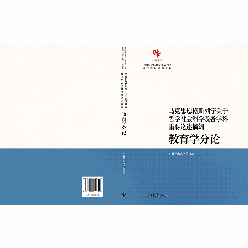 《马克思恩格斯列宁关于哲学社会科学及各学科重要论述摘编·教育学分论》由东北师范大学组织编撰。 全书旨在贯彻落实习近平总书记关于学习马克思主义经典著作的重要论述精神,帮助教育学类专业的师生全面系统地掌握马克思主义教育思想,准确运用马克思主义立场观点方法,进一步增强学用贯通、知行合一的本领,为教育学类专业的教学和研究、人才培养、教材建设提供思想指导。 书中选编了马克思、恩格斯、列宁不同时期关于教育的重要著作、文章和书信等 36 篇,其中,马克思的文献 11 篇,恩格斯的文献 7 篇,马克思和恩格斯合著的文献 2 篇,列宁的文献 16 篇。同时,摘选了马克思、恩格斯、列宁不同时期关于教育的重要言论,共计 109 条。 本书是马克思主义理论研究和建设工程重点教材,已经国家教材委、马工程专委会、思政专委会、学科专家组审议通过,同意出版。 |