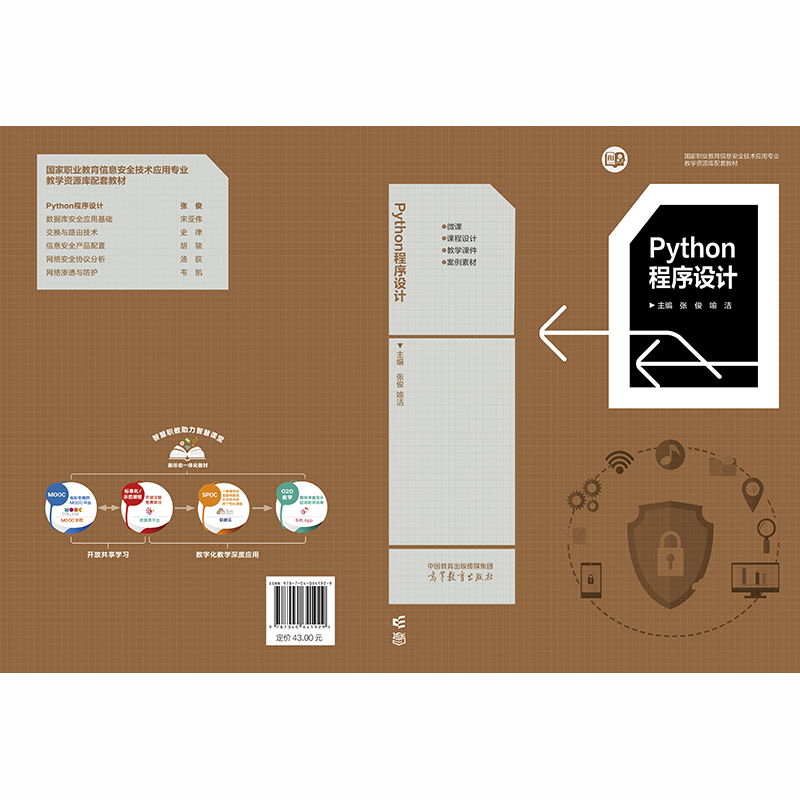 本书是国家职业教育信息安全技术应用专业教学资源库配套教材。 全书共分10个单元,主要讲解Python的基础知识、数据类型、程序结构、函数、面向对象编程、文件操作、Python数据分析Pandas和Python数据可视化。本书通俗易懂,内容由易到难,概念清晰,重点突出,习题丰富,比较适合Python初学者和从事大数据分析的从业人员。 本书配有微课视频、授课用PPT、教学案例、习题答案等丰富的数字化学习资源。与本书配套的数字课程在“智慧职教”平台(www.icve.com.cn)上线,学习者可登录平台在线学习,授课教师可调用本课程构建符合自身教学特色的SPOC课程,详见“智慧职教”服务指南。授课老师如需获得本书配套教辅资源,请登录“高等教育出版社产品信息检索系统”(xuanshu.hep.com.cn)搜索下载。 本书可作为高等职业院校Python语言课程的教材,也可作为广大计算机技术人员及相关自学者的辅助教材。 |