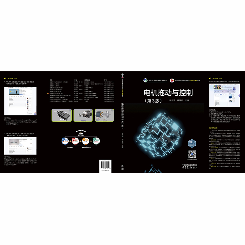 本书是“十四五”职业教育国家规划教材。本书配套课程“电机拖动与控制”为职业教育国家在线精品课程和国家职业教育专业教学资源库标准化课程。本书以工学结合、项目引导、“教学做”一体化为编写原则,涵盖电机与拖动、工厂电气控制设备、电气控制电路的绘制三个方面,分为三相异步电动机及其拖动控制、典型机床电气控制系统分析与设计、变压器及其他类型电机的运行与应用、电气控制线路电气图的绘制四个模块,每个模块都由若干个项目和任务组成。每个项目和任务都由课程编写小组从企业生产实践选题,再设计成教学项目,试做后编入教材,实用性强。 与本书配套的在线课程已在“智慧职教”(www.icve.com.cn)网站上线,读者可登录网站学习丰富的数字化课程教学资源,包括教学课件、微课、动画、虚拟实训等,授课教师可以调用本课程构建符合自身教学特色的SPOC课程,详见“智慧职教”服务指南。同时,学习者可以通过扫描书中的二维码观看微课和动画。教师如需授课用教学课件等文本资源,可登录“高等教育出版社产品信息检索系统”(https://xuanshu.hep.com.cn)免费下载。 本书可作为高等职业专科、本科院校电气类和机电类专业的教材,也可作为相关从业人员的参考用书。 |