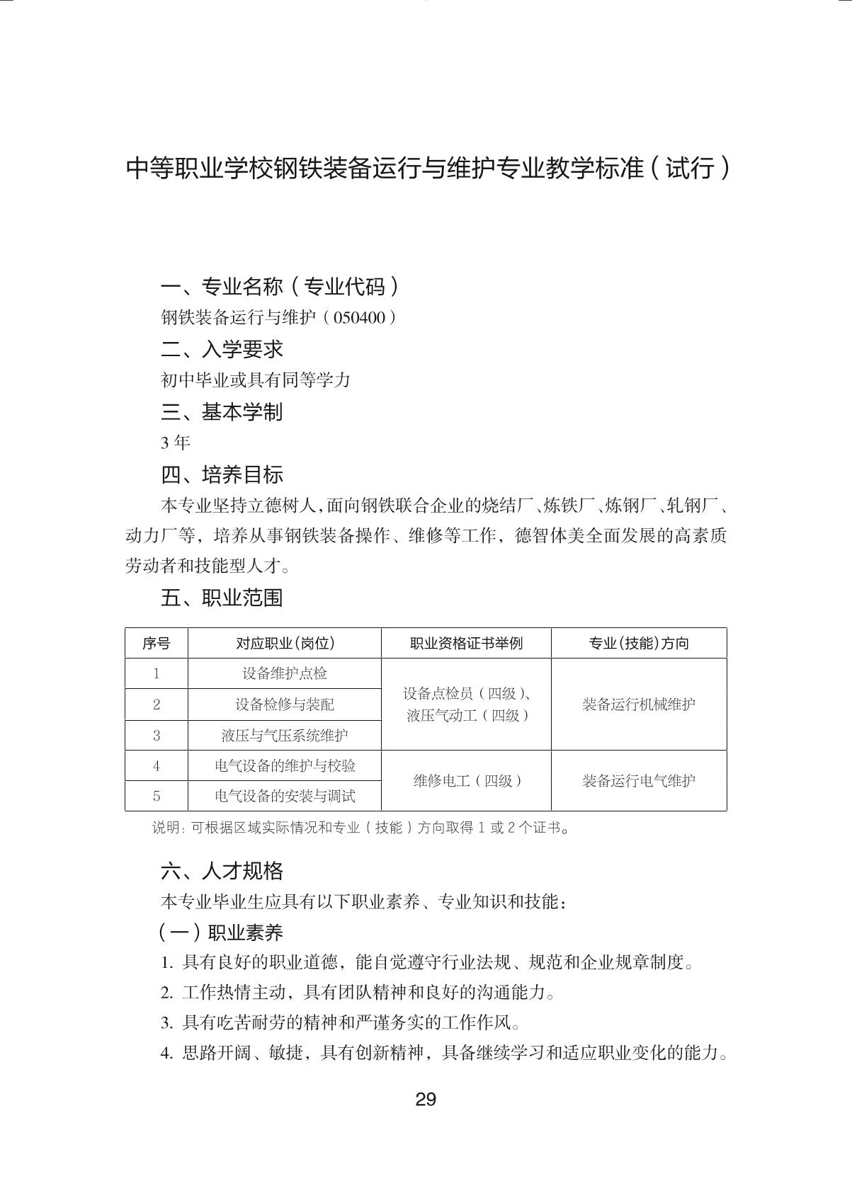 中等职业学校钢铁冶炼专业教学标准(试行) |