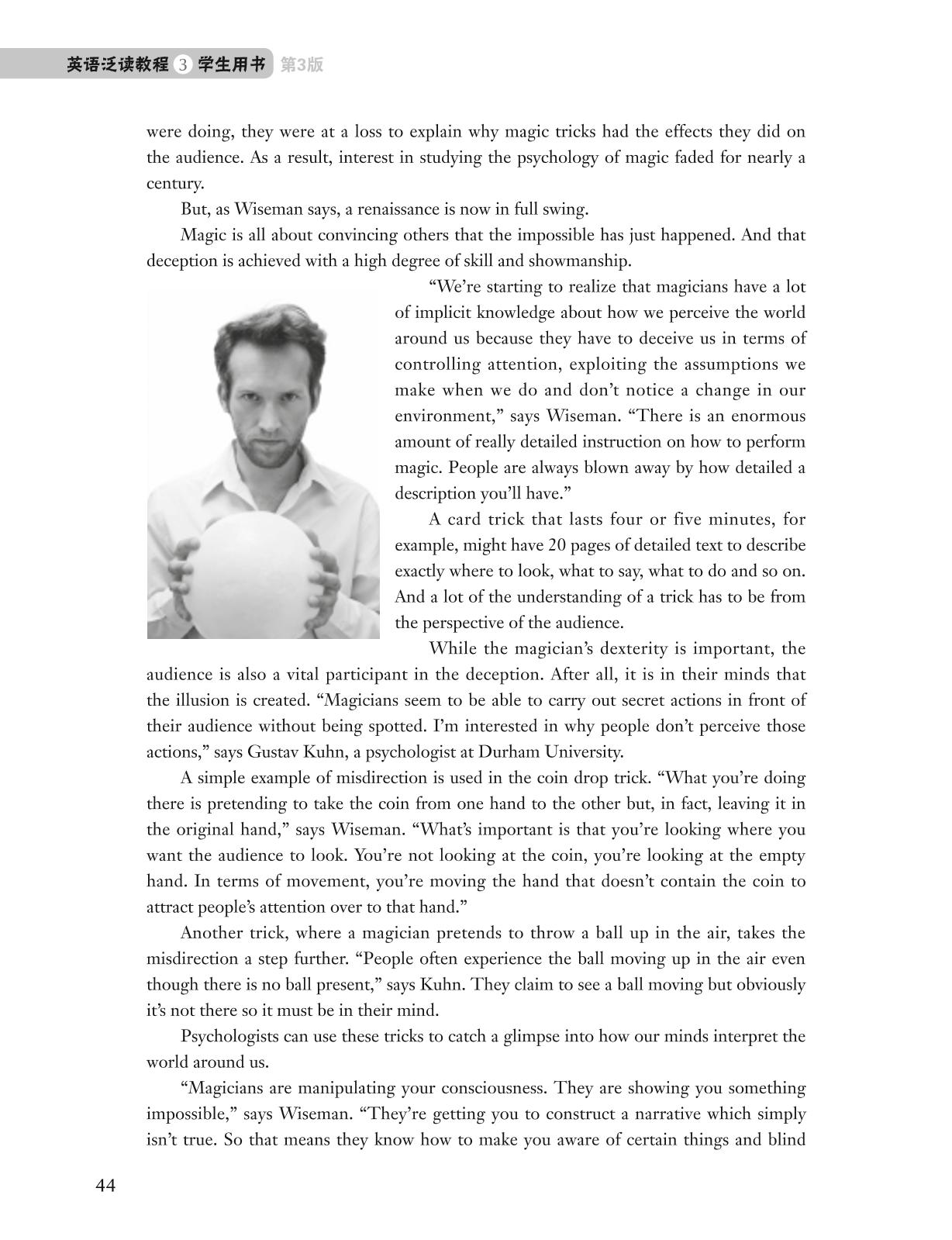 《英语泛读教程》(第三版)是普通高等教育“十一五”国家级规划教材,供高等学校英语专业一、二年级学生使用,也适用于同等程度的英语自学者。全套教材共4册。本书为第三册,共15个单元。每单元一般分为四部分:第一部分为阅读课文及练习,练习包括判断课文中心思想、阅读理解、课堂讨论题和词汇练习;第二部分为阅读技巧,重点介绍各种阅读技巧,并配有相应的练习;第三部分为快速阅读练习,提供3篇短文,要求在规定的时间内完成;第四部分为课外阅读,提供和课文长度相当的语言材料,配有阅读理解题和思考题。 本教材第三版替换了第二版的部分内容,并根据难易程度调整了单元顺序,使阅读文章题材更加广泛、更具有时代感。 |