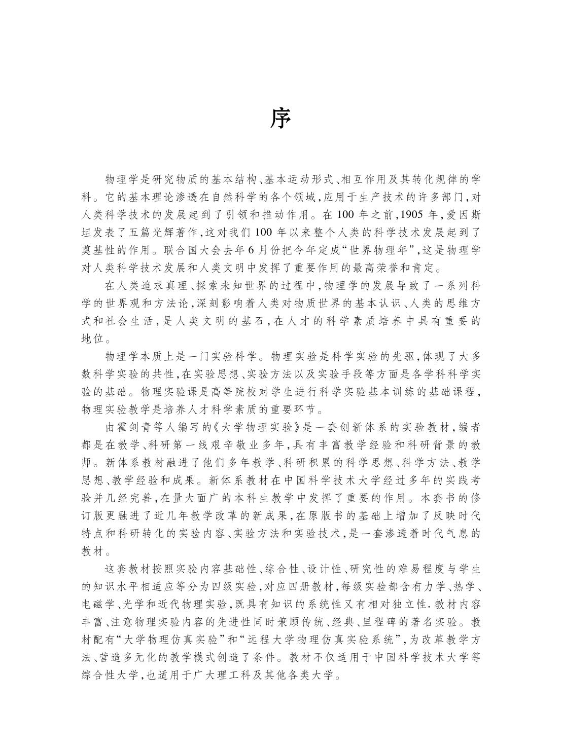 本套书的第一版是“面向21世纪课程教材”,它打破了传统实验课教材的编写模式,建立了一个能促使实验课独立发展的新的教材体系,以本套书为基础的教学实践获得了2001年国家级教学成果一等奖?本次修订融进了近几年教学改革中的新成果,增加了由科研转化而来?反映时代特点的实验内容和实验方法,在多数实验中还增加了设计性内容?全套书共分四册,其中第一册适应于理?工?农?医?商等各学科领域,为各专业的普及课程;第二册适应于理工科各专业;第三册适应于理科各专业及需要加强物理基础的工科专业;第四册适应于物理类专业及相关理科非物理类专业?每册的内容都覆盖有力学?热学?电磁学?光学?近代物理等领域的实验,各册书依次逐级提高,适应于不同层次教学的需要?本套书中还涉及一些科学研究前沿中众所关注的课题?本套书配有大学物理仿真实验软件? 本书第一册以基础性物理实验为主,共分8章,含有39个实验,可供高等院校理?工?农?医?商等各专业的学生作为物理实验课的教材,也可供社会读者阅读? |