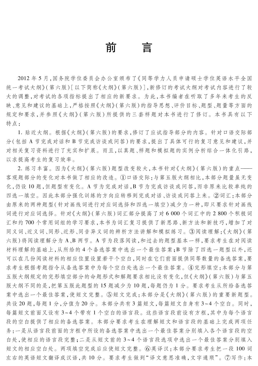 本书依据国务院学位办最新修订的《同等学力人员申请硕士学位英语水平全国统一考试大纲》(第6版)编写,针对考试题型逐一进行分析和讲解,为参加考试的人员进行应试指导,精心设计了多套模拟试题,并对试题进行精解,对考生检测复习效果、进行考前演练有重要的参考价值。 |