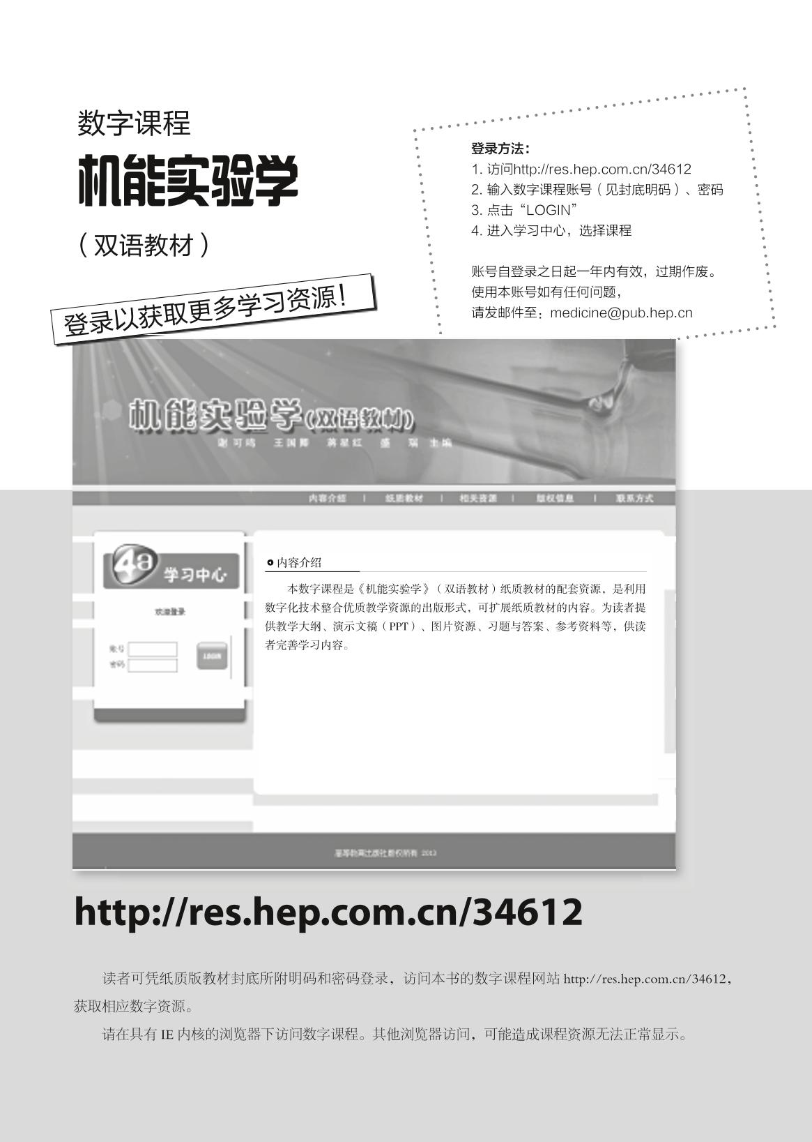 本教材整合了生理学、药理学、病理生理学和神经生物学的实验教学内容,分总论、基础性实验、综合性实验、创新性实验和病例讨论5篇,共23章。总论介绍机能实验的基本知识、技能及相关进展;基础性实验精选了相关学科的经典实验;综合性实验以系统或跨系统的实验为主线,融正常机能观察、疾病模型建立与药物干预于一体。基础性实验、综合性实验和病例讨论为中英文对照,总论和创新性实验各章设有英文内容提要。本教材内容丰富、图文并茂,兼顾“三基”与创新能力培养,配有数字资源供拓展学习,实用性强。 本教材主要供高等医药院校各相关专业双语教学使用,也可作为留学生教材,并可供生物医学领域的研究生、青年教师及科研工作者参考。 |